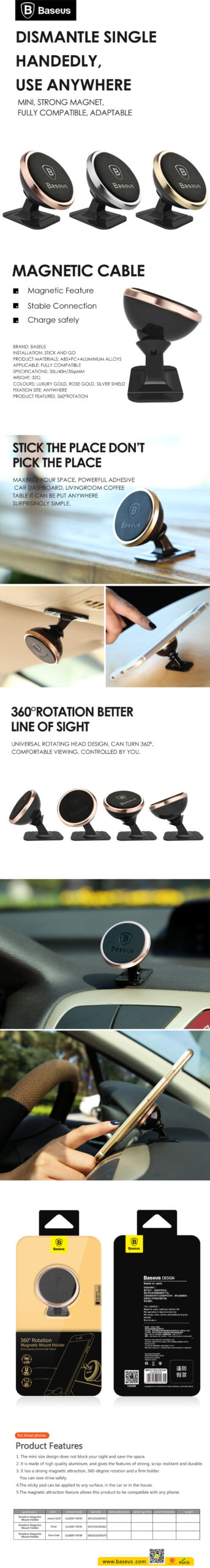 Μαγνητική βάση αυτοκινήτου Baseus 360-Degree Rotation Magnetic Car Phone Holder που θα σας διευκολύνει κατά την οδήγησή σας. Η βάση μπορεί να τοποθετηθεί σε οποιαδήποτε ομαλή επιφάνεια, όπως το παρμπρίζ στο αυτοκίνητο και είναι συμβατή με όλα τα Smartphones / GPS / MP4. Χάρη σε αυτή τη βάση το κάθε ταξίδι θα είναι πιο άνετο και ξεκούραστο για εσάς και τους συνεπιβάτες σας!