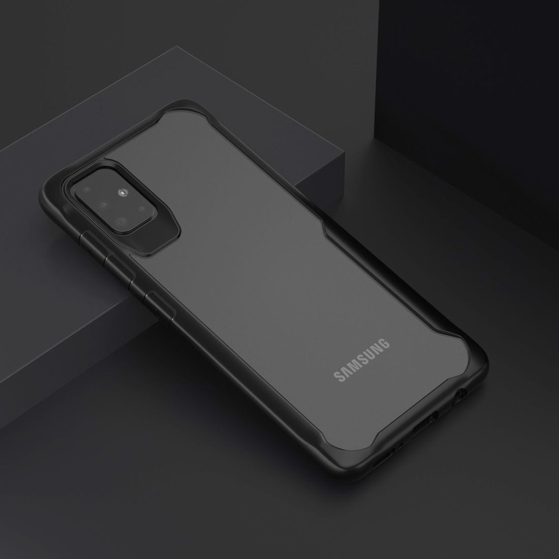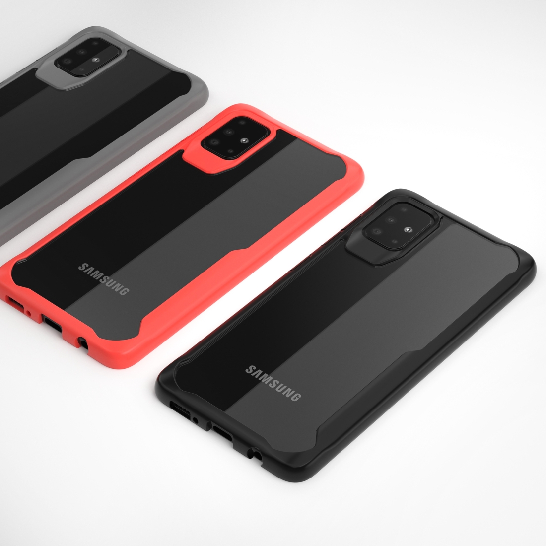 Κατασκευασμένη από σκληρό πολυανθρακικό πλαστικό (PC) στο πίσω μέρος, που αναδεικνύει το κομψό προφίλ του αγαπημένου σας Samsung Galaxy Α71. Με μαλακή πολυουρεθάνη (TPU) περιμετρικά, για ισχυρή προστασία από χτυπήματα και γρατζουνιές. Διαθέτει ενισχυμένες γωνίες, εσωτερικά και εξωτερικά, ειδικά κατασκευασμένες για να προστατεύσουν τη συσκευή σας σε περίπτωση πτώσης από κάθε πιθανή γωνία.