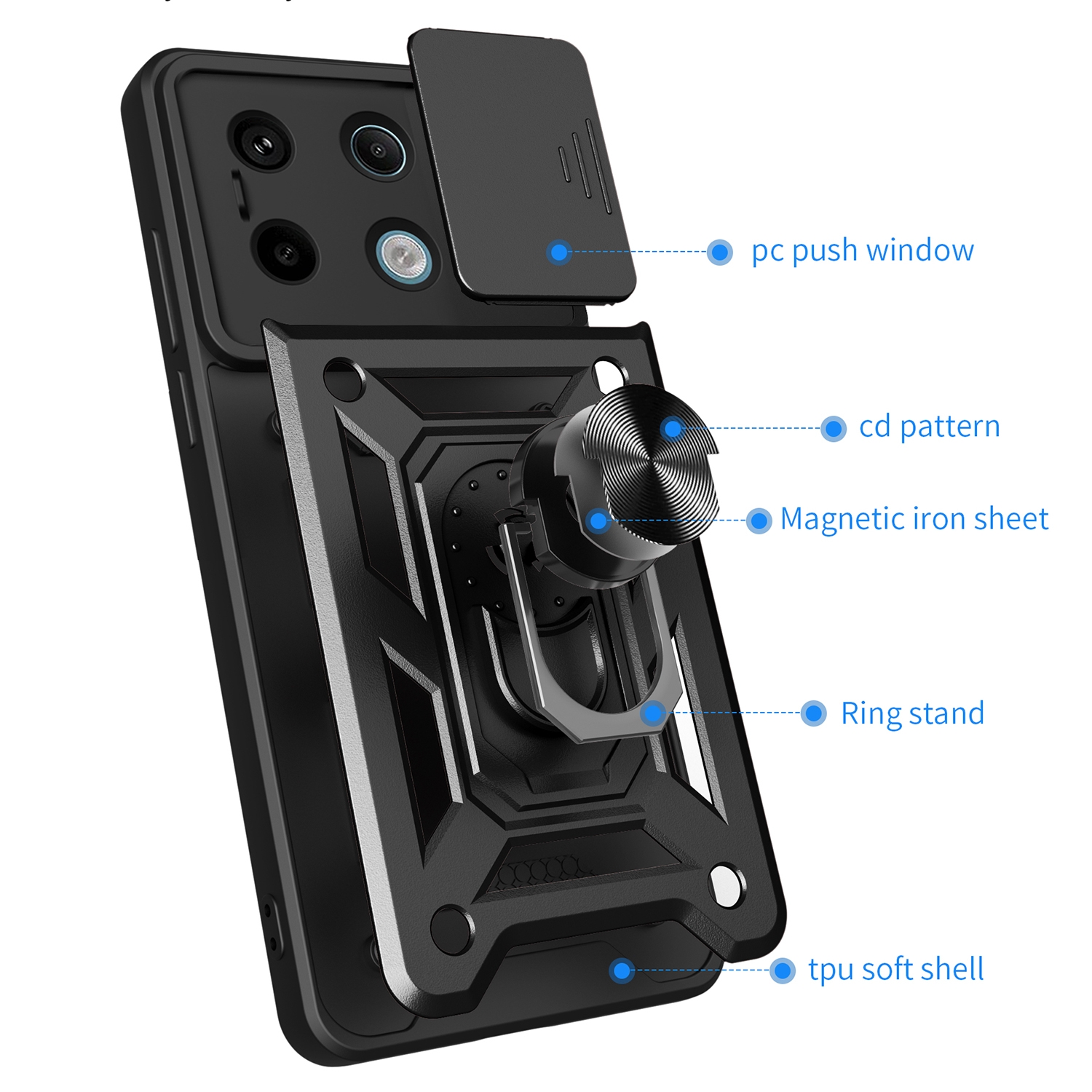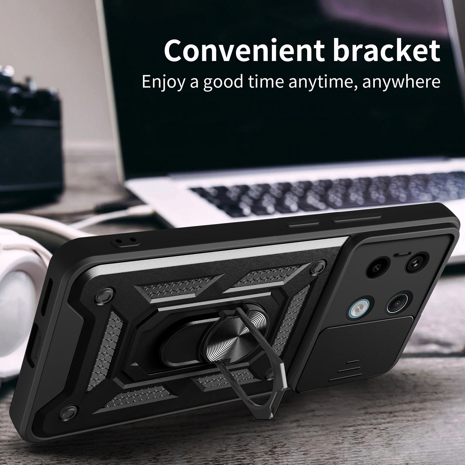Η Sliding Camera Cover Design TPU+PC είναι μία υψηλής προστασίας θήκη που παρέχει στο Xiaomi Redmi Note 13 Pro 5G εκπληκτική προστασία από γρατζουνιές, σκόνη και πτώσεις. Στο πίσω μέρος υπάρχει ενσωματωμένο δαχτυλίδι συγκράτησης για πιο σταθερό κράτημα του κινητού και μετατρέπεται πολύ εύκολα σε stand, ώστε να παρακολουθείτε βίντεο με άνεση. Με το ειδικό πορτάκι παρέχει πλήρη προστασία στην κάμερα.