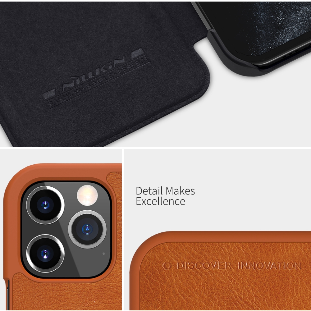 Η δερμάτινη θήκη NILLKIN για το iPhone 12 / 12 Pro χρησιμοποιεί φυσικό δέρμα με άψογη αφή δημιουργώντας ένα νέο στυλ. Μαλακή λεπτή επένδυση, αντιολισθητική και ανθεκτική στη βρωμιά, μοδάτη και εύχρηστη. Κλασσική flip δερμάτινη κάλυψη σχεδιασμένη ώστε να παρέχει στο κινητό σας προστασία 360°. Προσαρμοσμένη εσωτερική υποδοχή για να τοποθετήσετε την κάρτα σας άνετα.