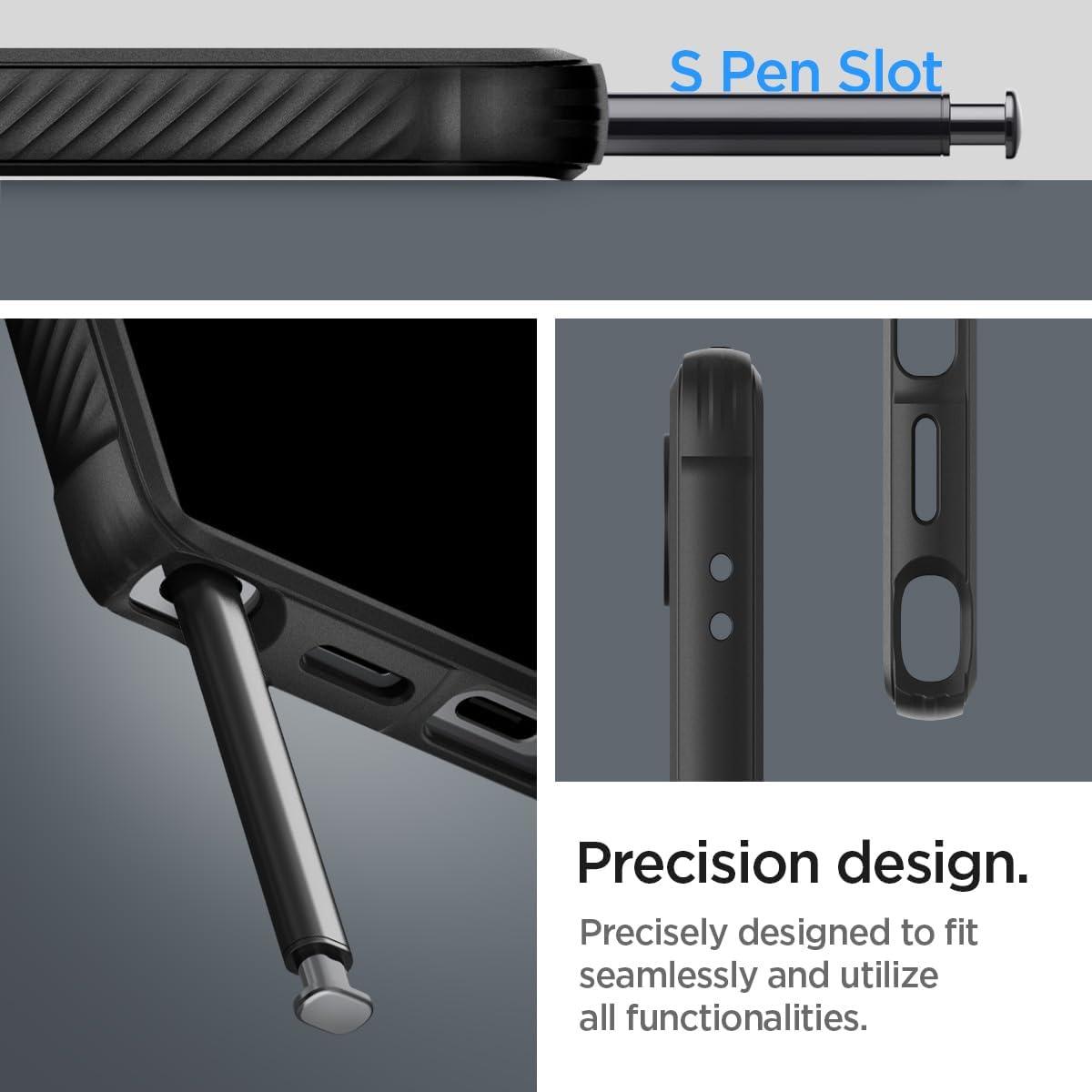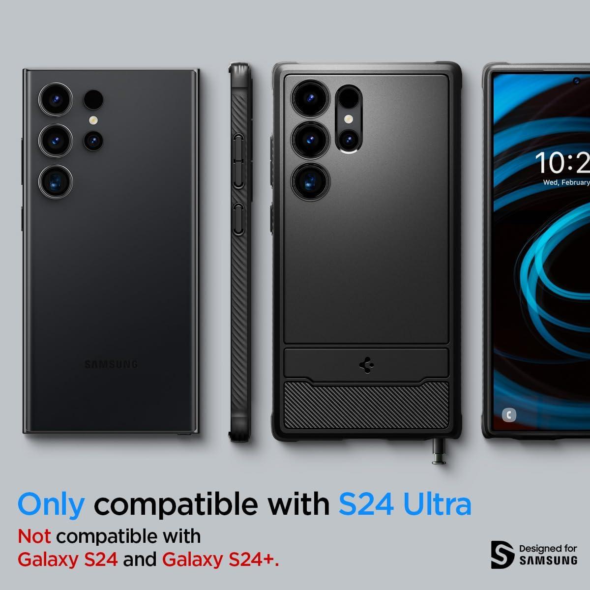 Θήκη Rugged Armor της εταιρείας Spigen για προστασία του πίσω μέρους του κινητού σας Samsung Galaxy S24 Ultra 5G από γρατζουνιές κι άλλες φθορές.